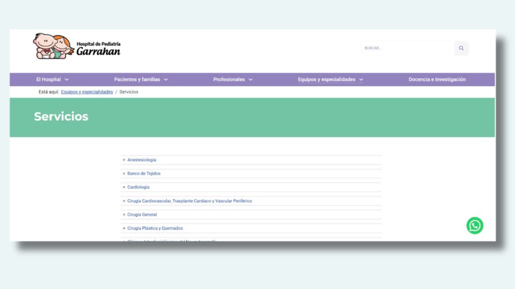 No todos los especialistas figuran en la lista de “Servicios”. Muchos de los médicos más destacados del país trabajan en Programas Específicos (como el Programa de Trasplante, el de Diagnóstico Fetal o el de Enfermedades Poco Frecuentes).